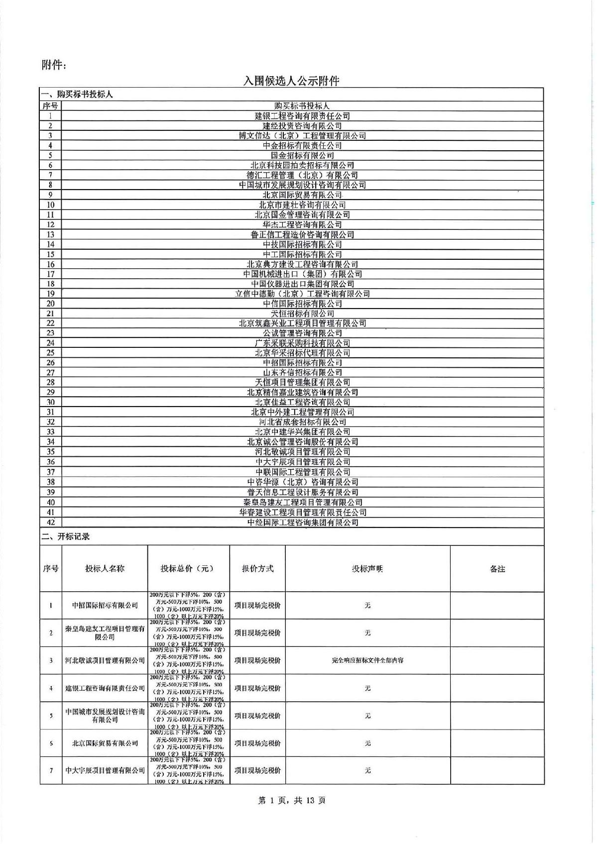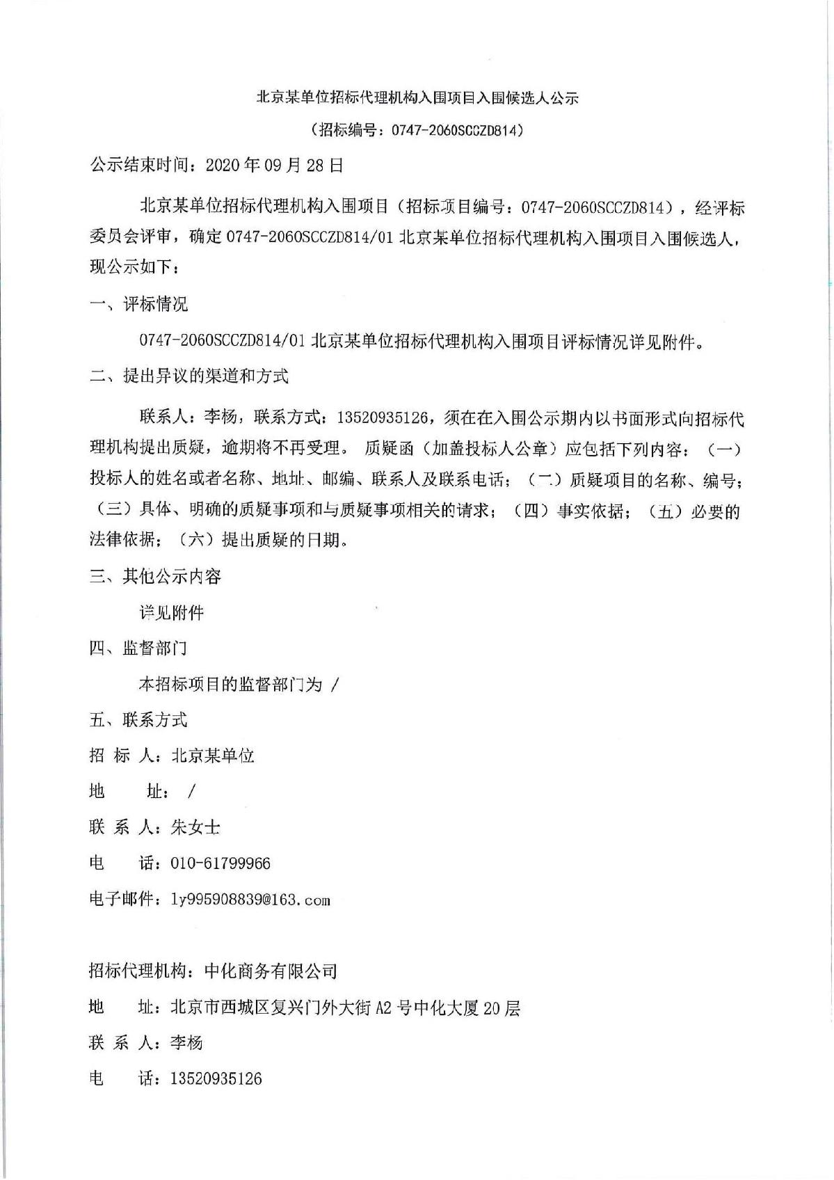 北京官方版招标代理有限公司成功入围北京某单单位候选人